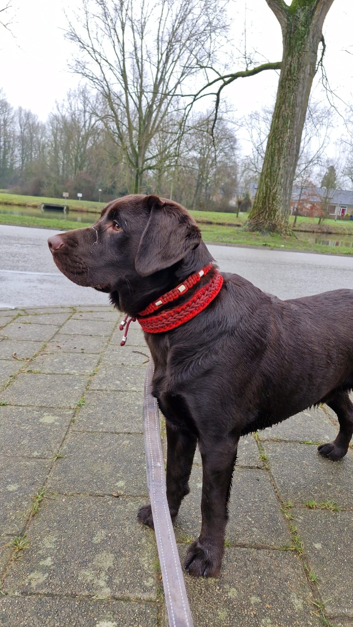 Ik vond de 'gewone' halsbanden en accessoires saai en wilde iets moois. Ik zag wel eens mooie paracord halsbanden voorbij komen maar wilde wachten tot Puck uitgegroeid was. Uiteindelijk na een eerste tekenbandje te hebben besteld zelf geprobeerd een tekenbandje te maken en dit lukte na een aantal pogingen. Na een tijdje ben ik een halsband gaan proberen om te maken, en na een aantal mislukte pogingen ging dit goed. Veel oefenen en uitproberen dus!