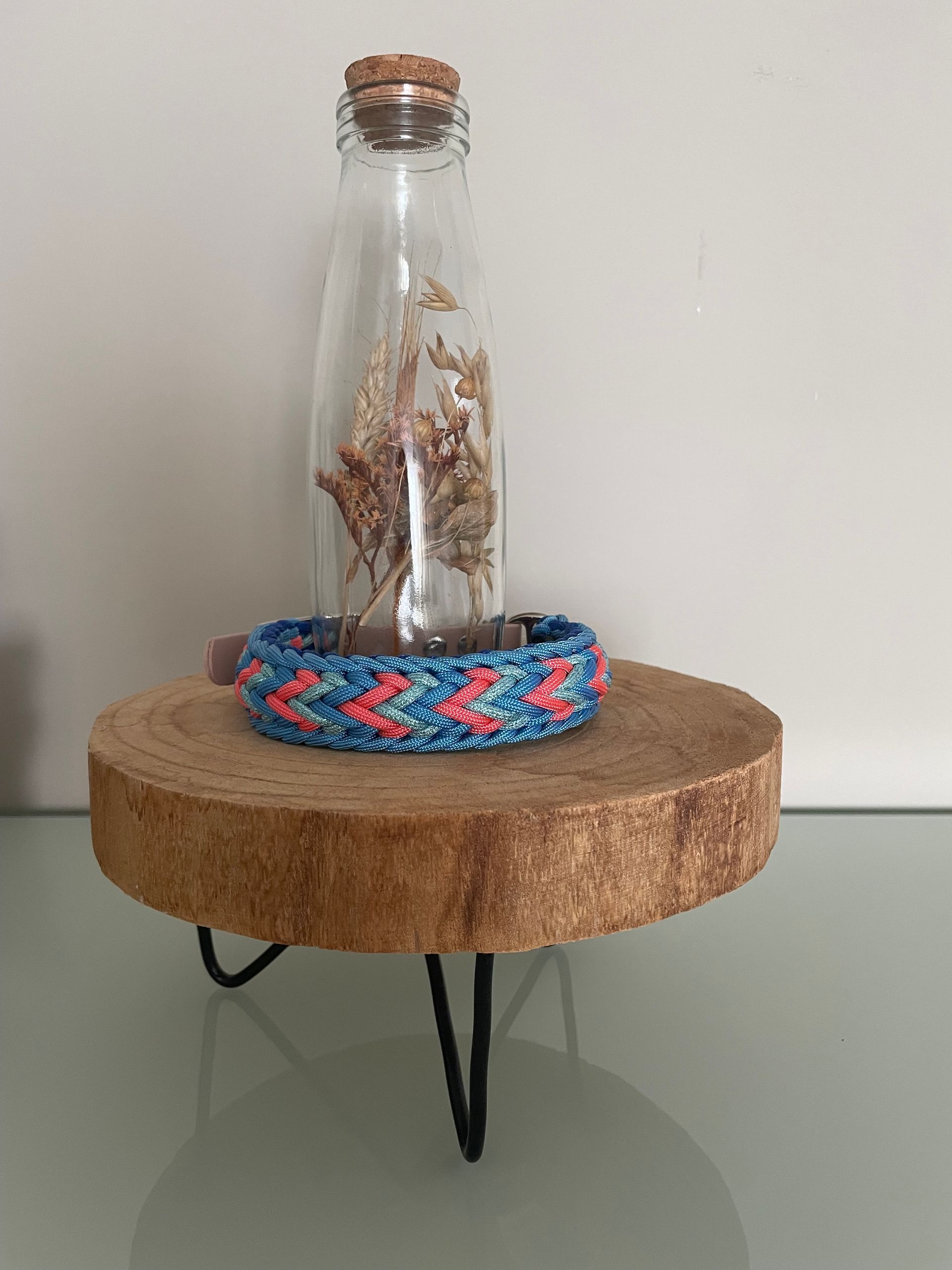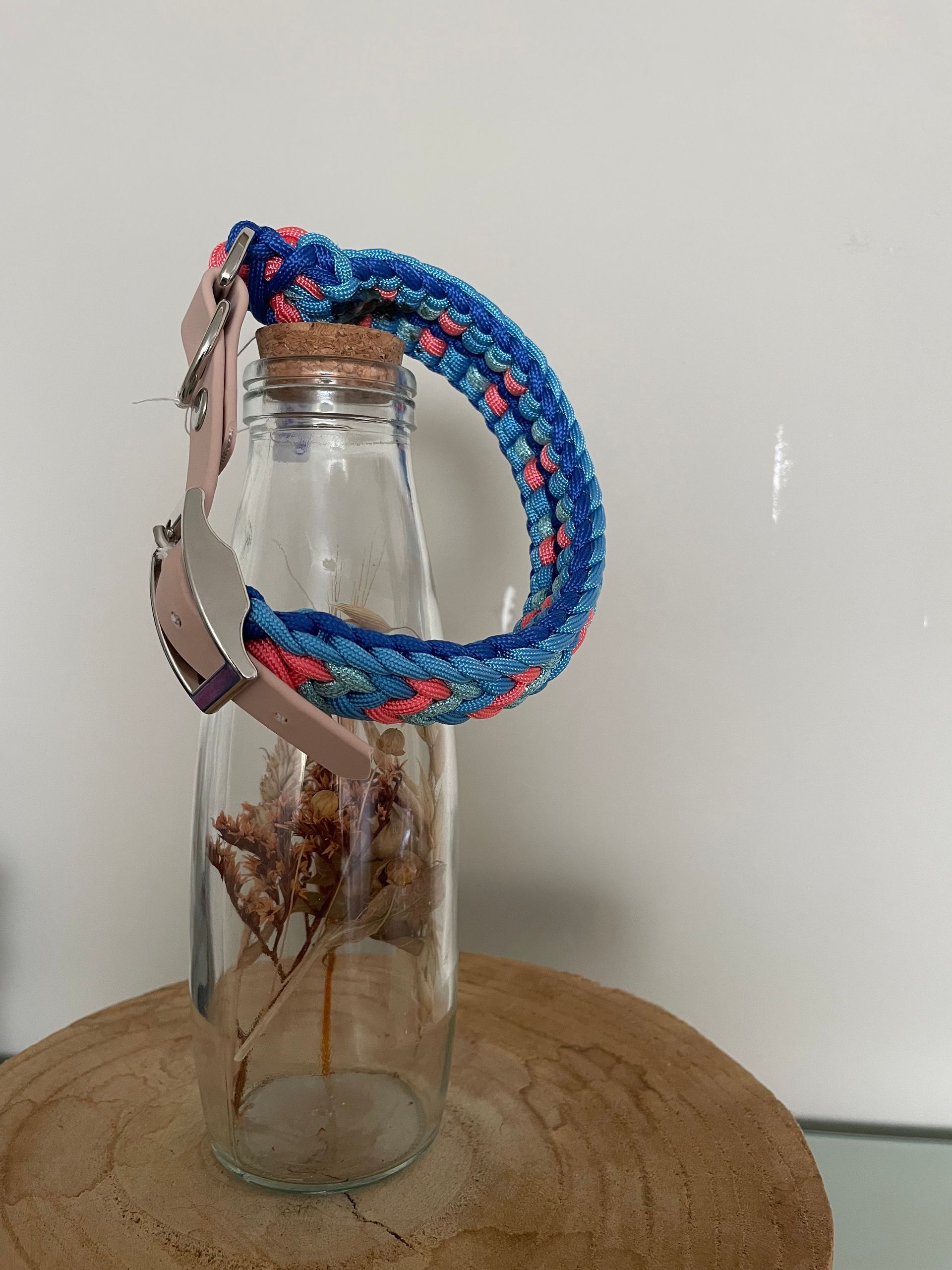 Ontdek de Coral Wave hondenhalsband voor de kleine tot middengrote hond! Een unieke, stijlvolle en comfortabele halsband in de prachtige kleuren: donkerblauw, baby blauw, shiny ice en coral. Deze halsband heeft een poeder bruine- zilveren adapter en een stevige breedte van 2,7 cm.