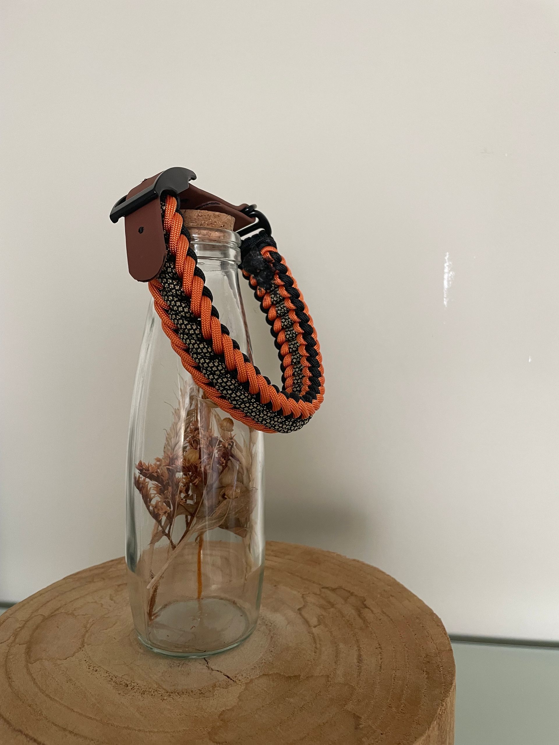Ontdek de Ember Glow hondenhalsband voor de kleine tot middengrote hond! Een unieke, stijlvolle en comfortabele halsband in de prachtige kleuren: zwart, goud diamond en Fox oranje. Deze halsband heeft een midden bruine- mat zwarte adapter en een stevige breedte van 2,5 cm.