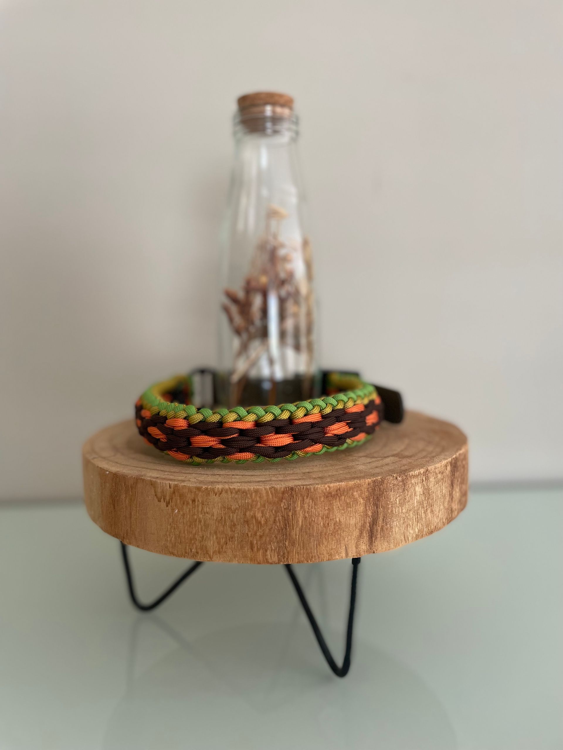 Ontdek de Autum Storm hondenhalsband, een unieke, stijlvolle en comfortabele halsband is de prachtige kleuren: oker geel, leaf groen, fox orange en walnut bruin. Deze luxe halsband heeft een olijf- mat zwarte adapter en heeft een stevige breedte van 3,5 cm.